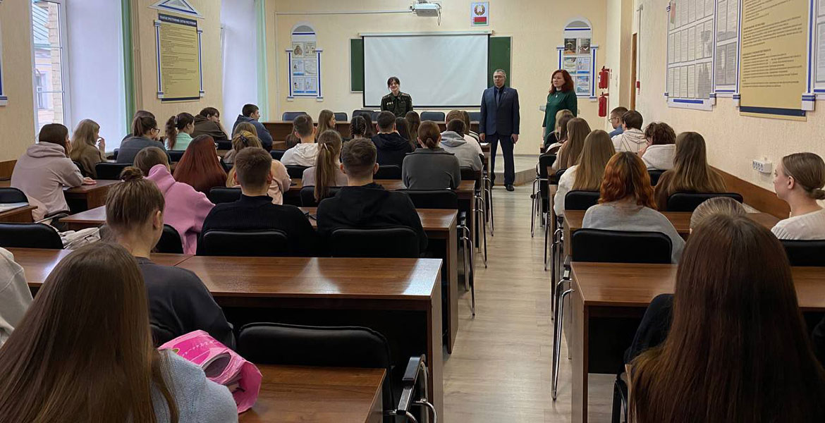 В МГУ имени А. А. Кулешова состоялась интересная профориентационная встреча студентов факультета экономики и права и факультета физического воспитания с начальником отдела идеологической работы и кадрового обеспечения Исправительного учреждения «Исправительная колония №14» УДИН МВД Республики Беларусь по г. Минску и Минской области — Ковалевой Марией Дмитриевной.