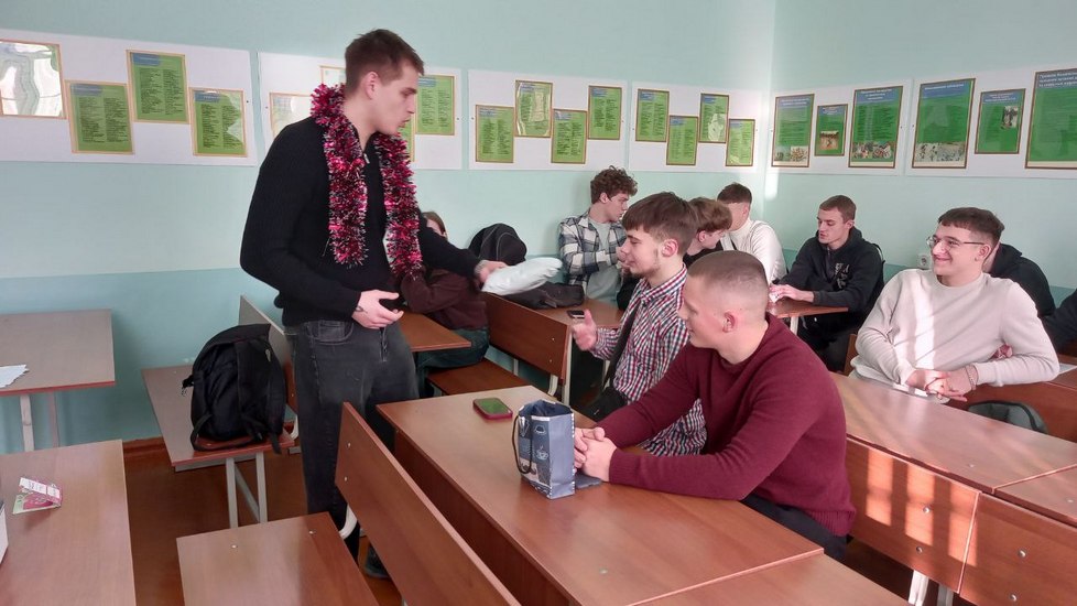 В группе 6131232 прошёл яркий предновогодний информационный час. Атмосфера была наполнена теплом и радостью. Вместе с куратором Мазько С. Г. ребята делились семейными традициями празднования Нового года и Рождества, с особым трепетом вспоминали уютные вечера у бабушек и дедушек. Вместе они погрузились в историю зимних праздников и узнали, как встречают Новый год в разных странах мира. Завершением встречи стала игра «Угадай кому подарок» — ведущий описывал, того, кому предназначался сюрприз, а студенты должны были отгадать. Ребята обменивались подарками и добрыми пожеланиями, создавая настроение настоящего праздника.