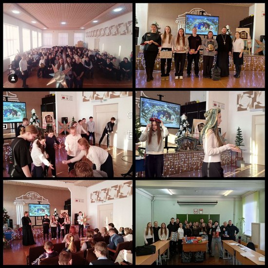 20.01.2026 г. творческий коллектив (Максимова Д., Скоробогатая В., Капшукова К., Выговская А. И.) и студенческий актив (Котов А., Зылинский А.) отправились в ГУО «Специальную школу закрытого типа г. Могилева» поздравить с Рождеством Христовым и Крещением Господним ребят, которые лишены возможности встретить эти праздники в кругу семьи. Ребята с интересом слушали отца Валерия об истоках праздника, участвовали в конкурсно-игровой программе, которые подготовили наши студенты. Дополнили праздничную атмосферу подарки, собранные студентами 1 и 3 курса ДФПО и Могилевской епархией.