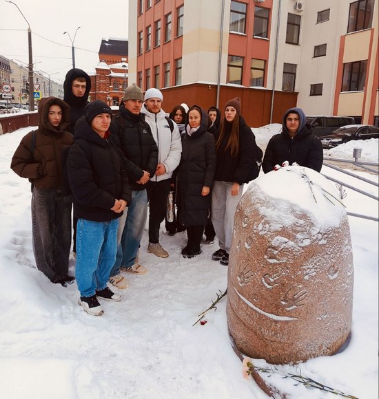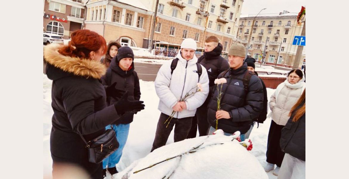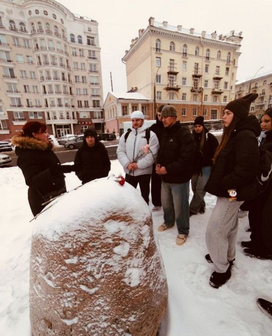 Студенты возложили цветы к памятному знаку «В память о евреях Могилева — жертвах нацизма» по улице Лазаренко.