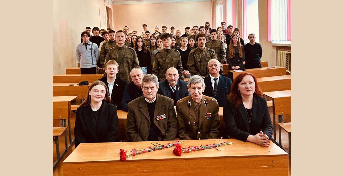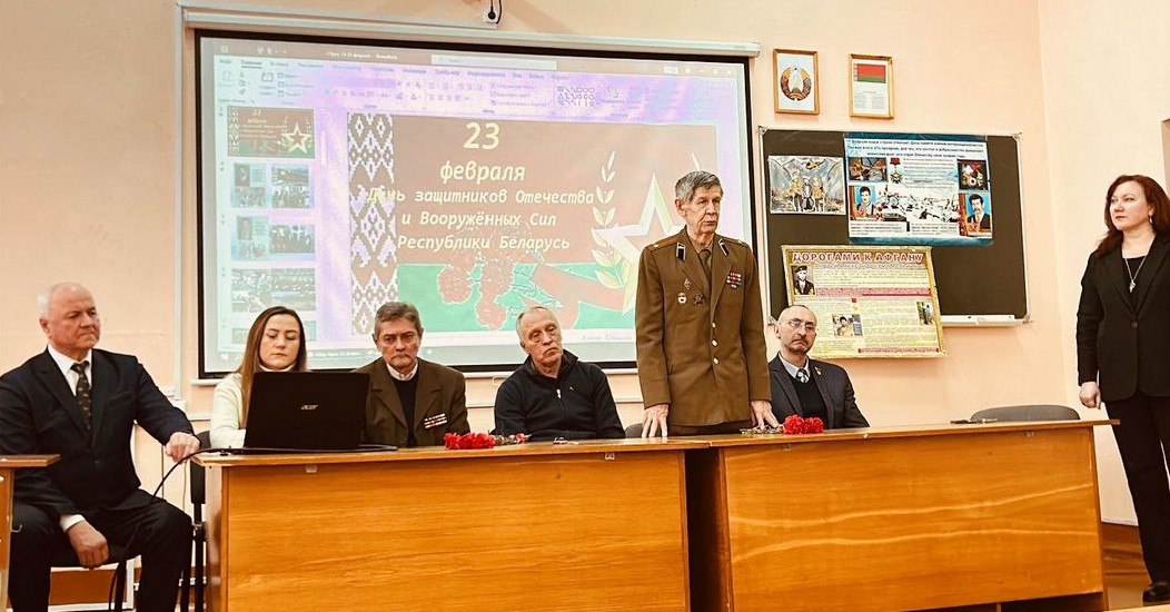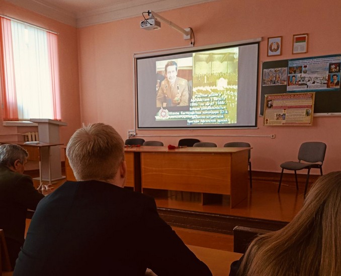 Перед собравшимися выступили подполковник запаса, кавалер ордена «Красной Звезды», старший преподаватель кафедры спортивных и медико-биологических дисциплин Сергей Брониславович Фатин и подполковник запаса, кавалер ордена «Красной Звезды» Евгений Александрович Шахов. Студенты из первых уст услышали повествование о реальных событиях и фактах Афганской войны, историю Вооруженных Сил Республики Беларусь. Прозвучали рассказы о мужестве и героизме солдат и офицеров.