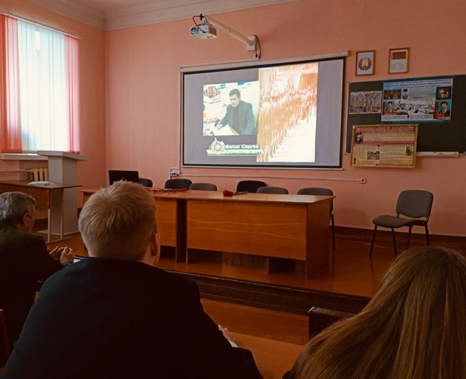 Продолжил беседу доцент кафедры спортивных и медико-биологических дисциплин Каранкевич Александр Игоревич. Он рассказал студентам о легендарном батальоне милиции под командованием К. Г. Владимирова, бойцы которого героически защищали подступы к городу Могилеву, почти неделю сдерживая натиск немецко-фашистских войск.