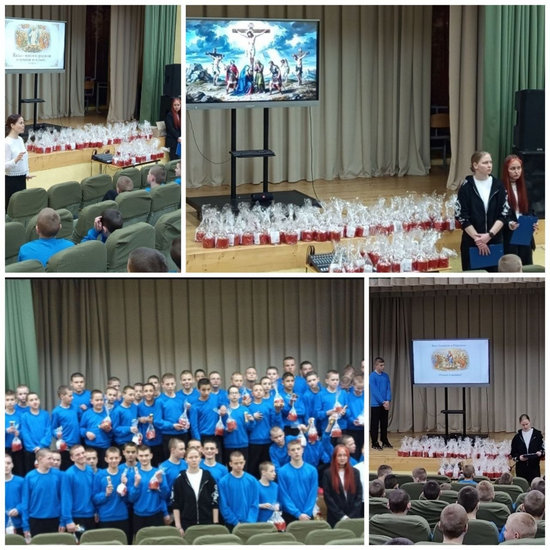 Цикл мероприятий продолжился вместе с воскресной школой Трёхсвятительского собора г. Могилева. Студенты посетили ГУО «Специальная школа №1 г. Могилева» для детей с нарушением слуха и речи. Почетным гостем стал клирик собора иерей Валерий Симончик. Добрым словом он открыл встречу, где студенты увлеченно рассказывали об истории Пасхи, воспитанники воскресной школы радовали творческими номерами, а сами дети делились своими семейными традициями.